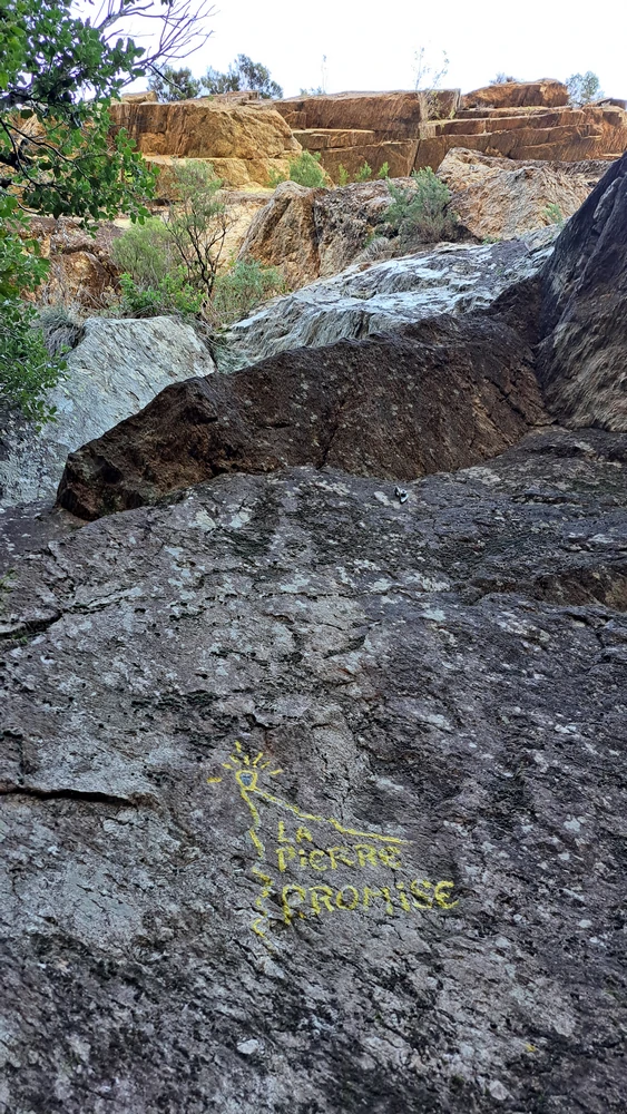 Accès : Après avoir laissé votre voiture au parking des Gorges de Colombières, vous progresser en direction du torrent, prenez l'escalier tailler dans la roche. Au bout du cheminement béton, vous traversez le torrent via le muret, si ça déborde du muret, renoncez à votre séance :). En face, vous retrouvez un sentier très joueur, qui vous permet de traverser de nouveau le torrent et de retrouver le tuyau noir. Dès que le tuyau noir disparait, vous continuez votre progression sur la même rive jusqu'à trouver une cascade et sa vasque qui laisse filer l'eau entre les rochers. Vous traversez, contournez le conglomérat par la gauche, le départ est sur votre droite.