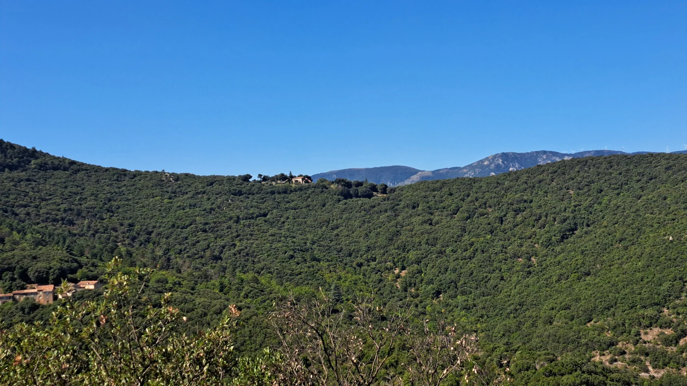 Si vous êtes pressé au kilomètre 18, une piste dans les châtaigniers quitte la route par la gauche et rejoint la piste verte directement sans passer par Olargues et le bar le Funambule (dommage)