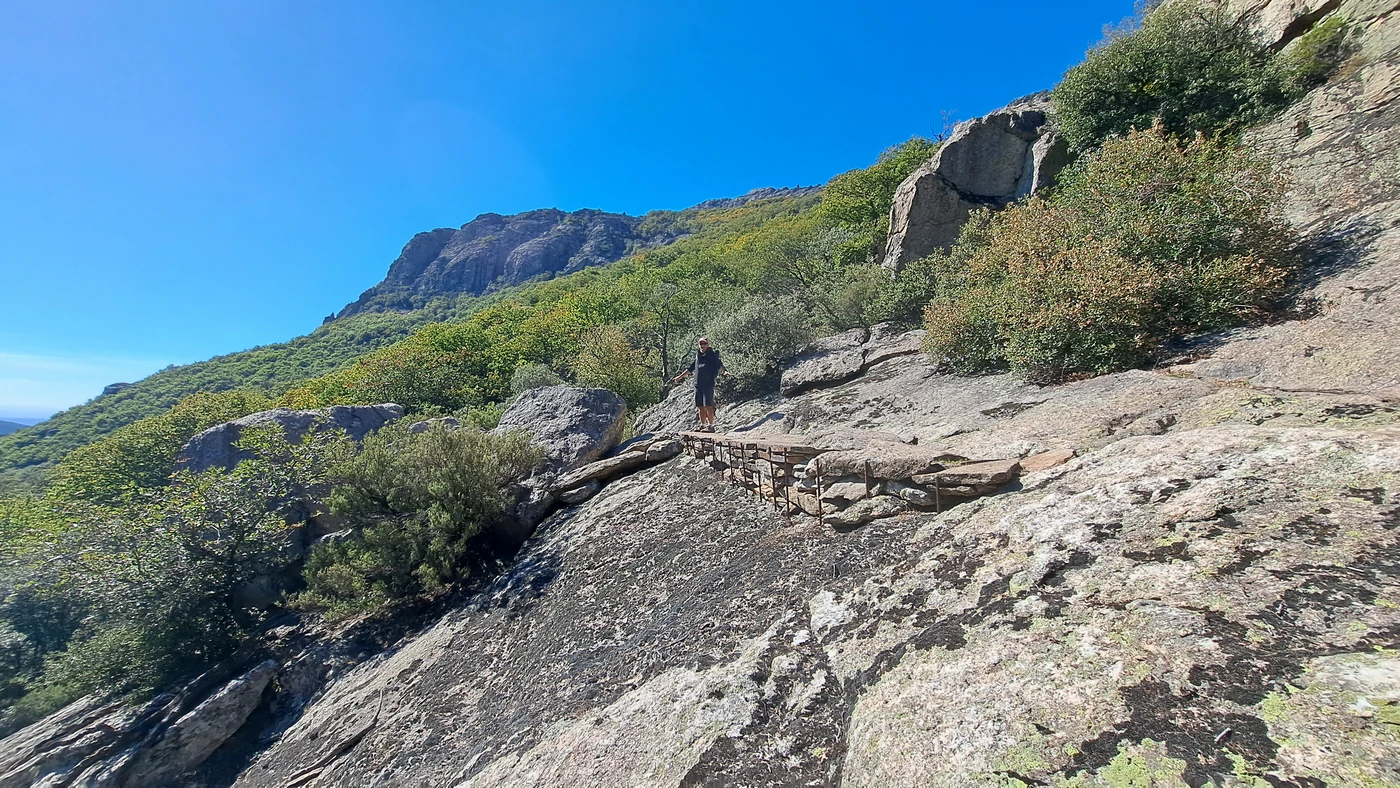 Grand classique du Caroux le tour des Gorges de Colombières via le col des Avels. Nettement plus sportive que les gorges d'Héric, elles offrent à chaque instant des panoramas grandiose et une ambiance Corse. La première partie est simple, 4 kilomètres de montée régulière avec passage un peu vertigineux, mais bien sécurisé. Déconseillé après les grosses pluies ne serait ce que pour traverser le torrent de Roucayrol. Ne par manquer les troglodytes dans la montée. Au Refuge de Lafage, vous êtes quasi à moins de la moitié, mais le plus dur est fait et la terrasse est très accueillante. Pour écourter, au refuge, vous pouvez traverser le ruisseau et monter en face pour atteindre le chemin de retour. Si vous n'êtes pas d'humeur aventure, vous suivez le balisage qui fait le grand tour via la route. Après un moment de plat sur le balcon, la descente des Fleysses s'amorce. C'est régulier, sous les châtaigniers et sans difficulté, si ce n'est les feuilles mortes à l'automne. Passé la source et le hameau des Seilhols la dernière épreuve des escaliers vous attends, mais elle est relativement courte. À l'arrivée, en saison, la terrasse de l'Atelier 7 vous attends pour une pause bien méritée.