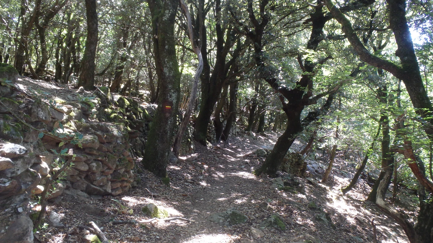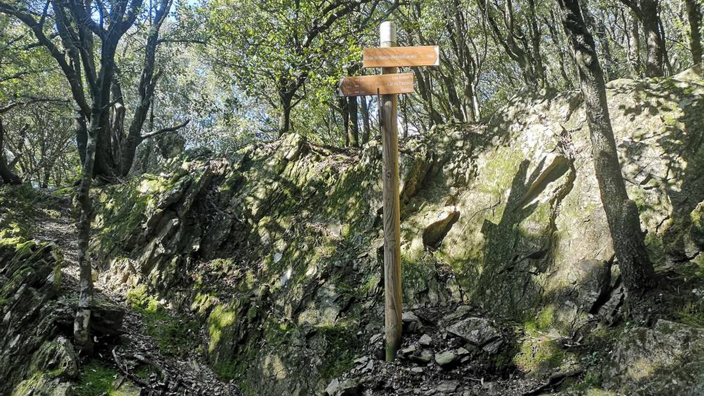 Reprendre le chemin en sens inverse pour revenir au Col de Bardou puis prendre la direction de Mons. Quelques mètres après, un autre panneau en bois vous invite à quitter le balisage rouge/blanc pour du jaune/rouge en direction de Mons.. Ne pas se fier au kilométrage indiqué sur le poteau directionnel : il est faux. Il vous reste 4 km avant le village et 5 pour le parking des gorges.