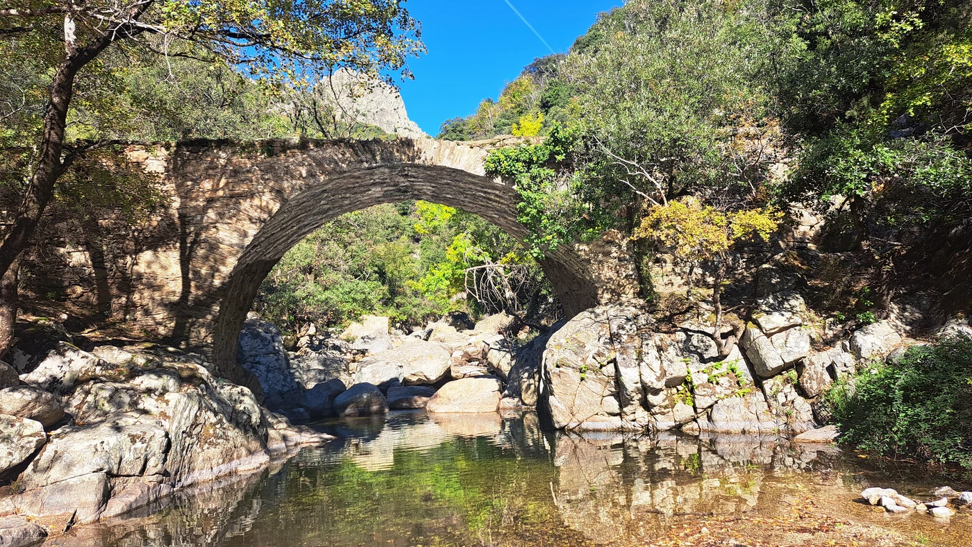 Dans le charmant petit hameau, prendre à gauche en direction de Bardou, en suivant le balisage du GR7 ( blanc et rouge) jusqu'au Col de Bardou. Vous passez sur le pont d'Héric, la montée est agréable sous des châtaigniers.