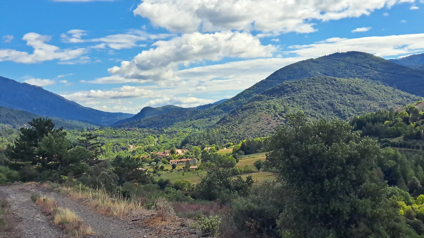 Vous êtes à vélo sur la Veloccitanie ? Vous souhaitez faire une pause, le food truck n'jolly marque le départ du balisage bleu qui monte et descend en Aller-retour sur le village de Saint-Vincent d'Olargues. Au sommet toilette et fontaine, la grande classe. Le sentier monte régulièrement dans un bel environnement et sur une large piste.